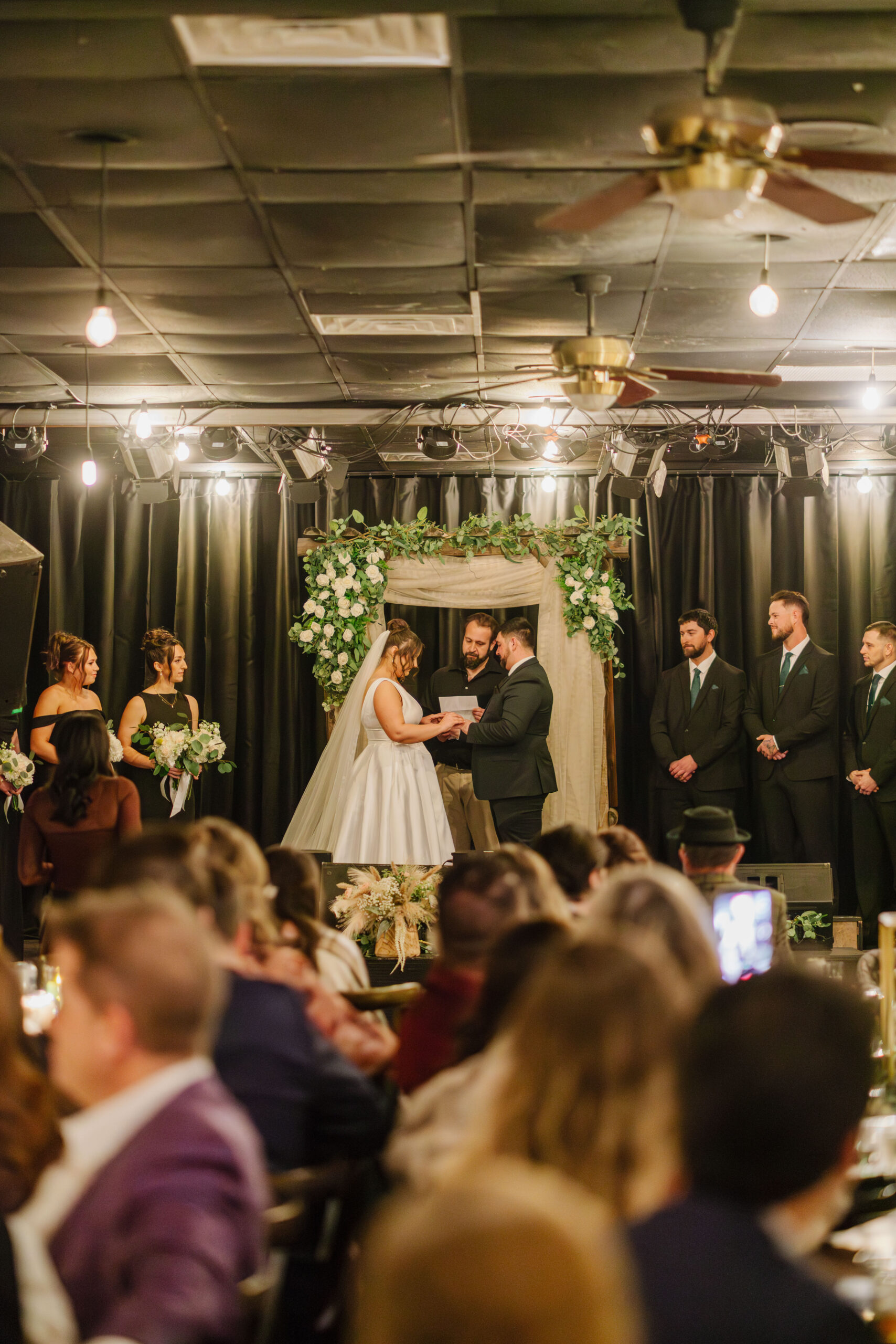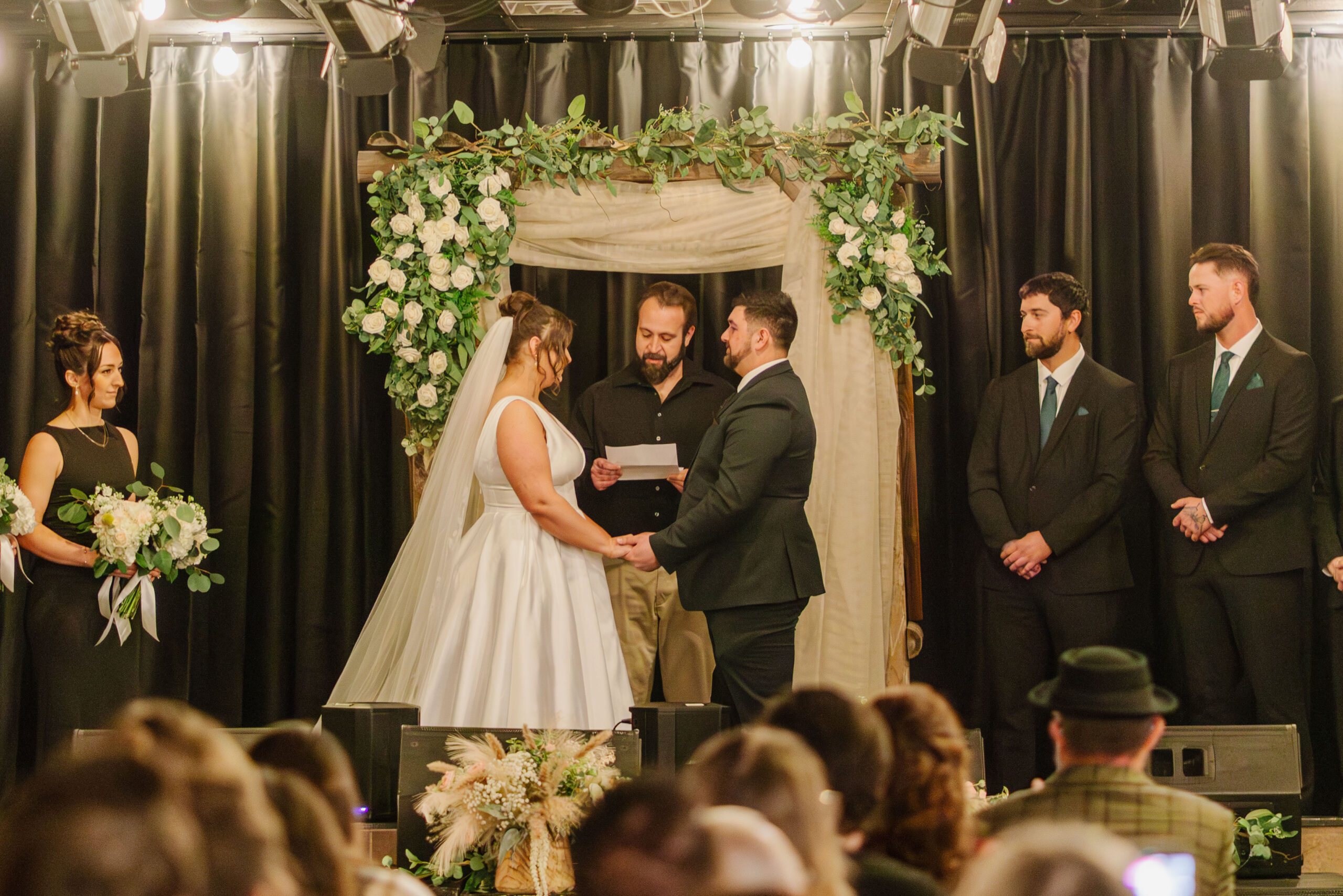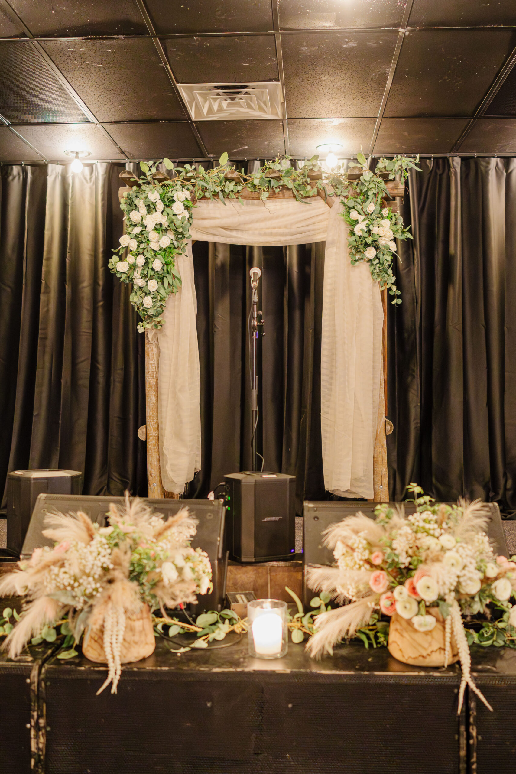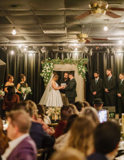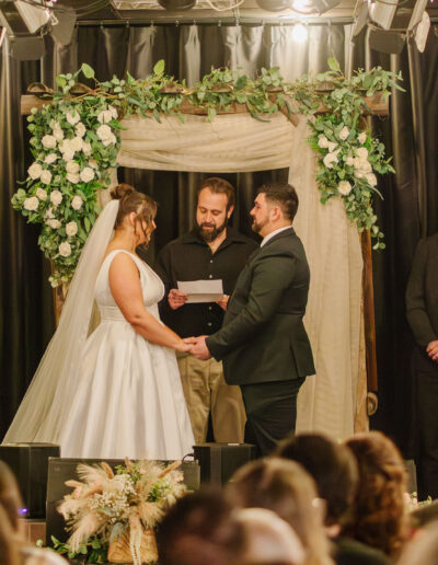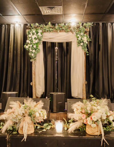 Introducing our Wedding Essentials Package, a thoughtfully designed celebration that gives you everything you need for an unforgettable day, without the overwhelming price tag. This package for our private event space includes everything you need for a wedding to accommodate up to 70 guests, including ceremony arbor on the stage with seating, reception with tables & seating, buffet style BBQ dinner, four-hour bar package, event planning assistance, & more – all for $5000.